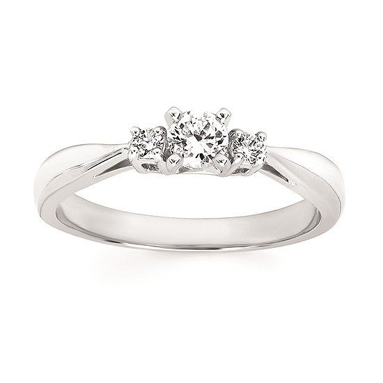 Engagement Ring 3 Stone Bridal: .06 Ctw. Diamond Semi Mount shown with 1/4 Ct. Round Center Diamond in 14K Gold